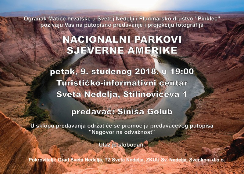 Ogranak Matice hrvatske u Svetoj Nedelji i Planinarsko društvo "Pinklec" pozivaju Vas na putopisno predavanje i projekciju fotografija