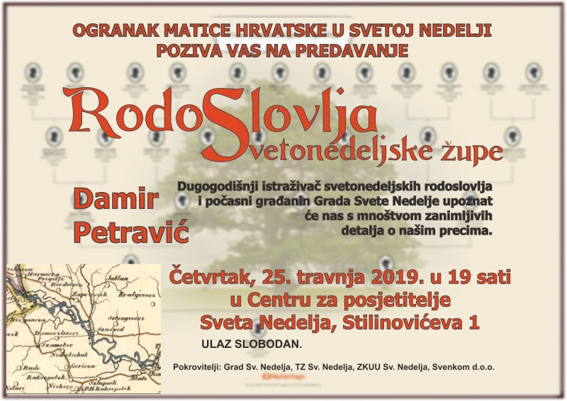 25.4.2019. (četvrtak) Damir Petravić: Rodoslovlja svetonedeljske župe, predavanje